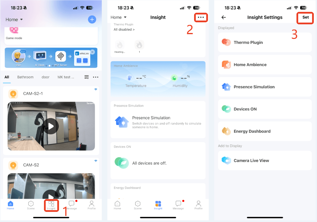 - Okamžité živé přenosy: Sledujte své kamery přímo v sekci Insight -> Živý náhled kamery . Přejetím prstu si můžete snadno prohlédnout až 3 různé živé přenosy.