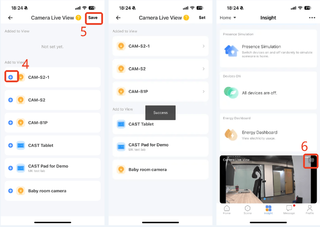 - Dokončete klepnutím na tlačítko „Uložit“ . Přejetím prstu zobrazíte všechny přidané živé přenosy z kamery na obrazovce Insight.